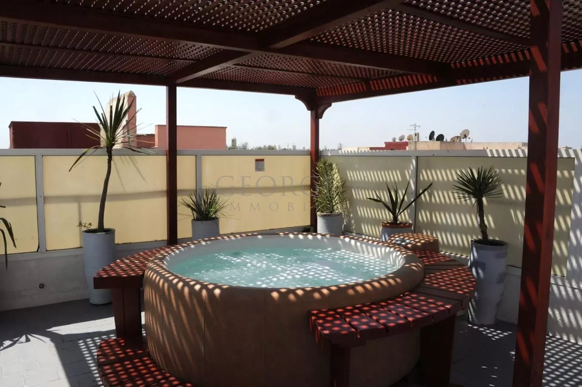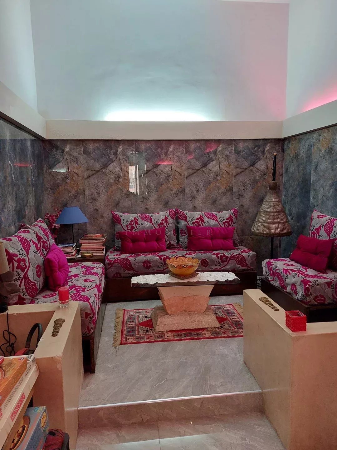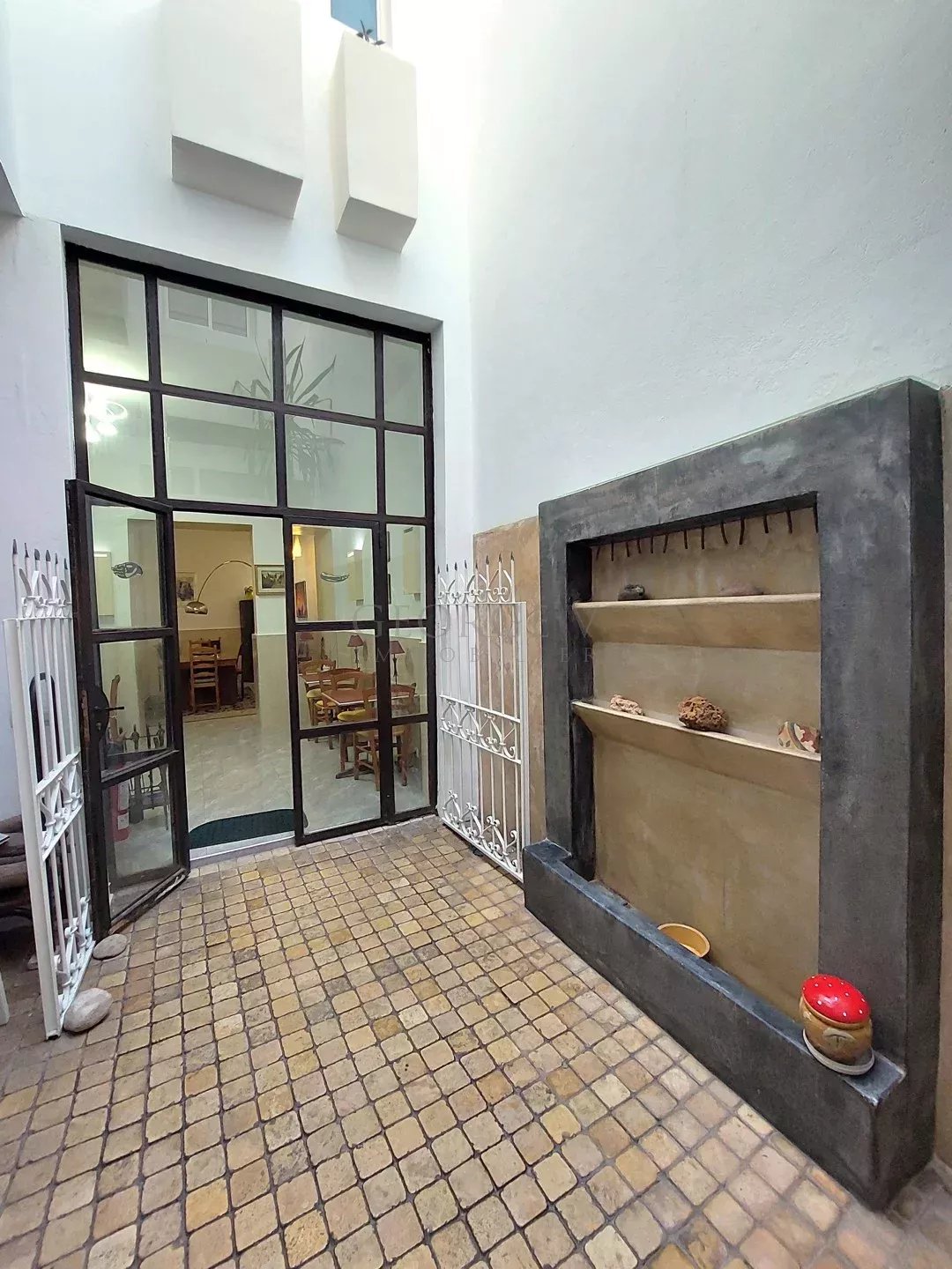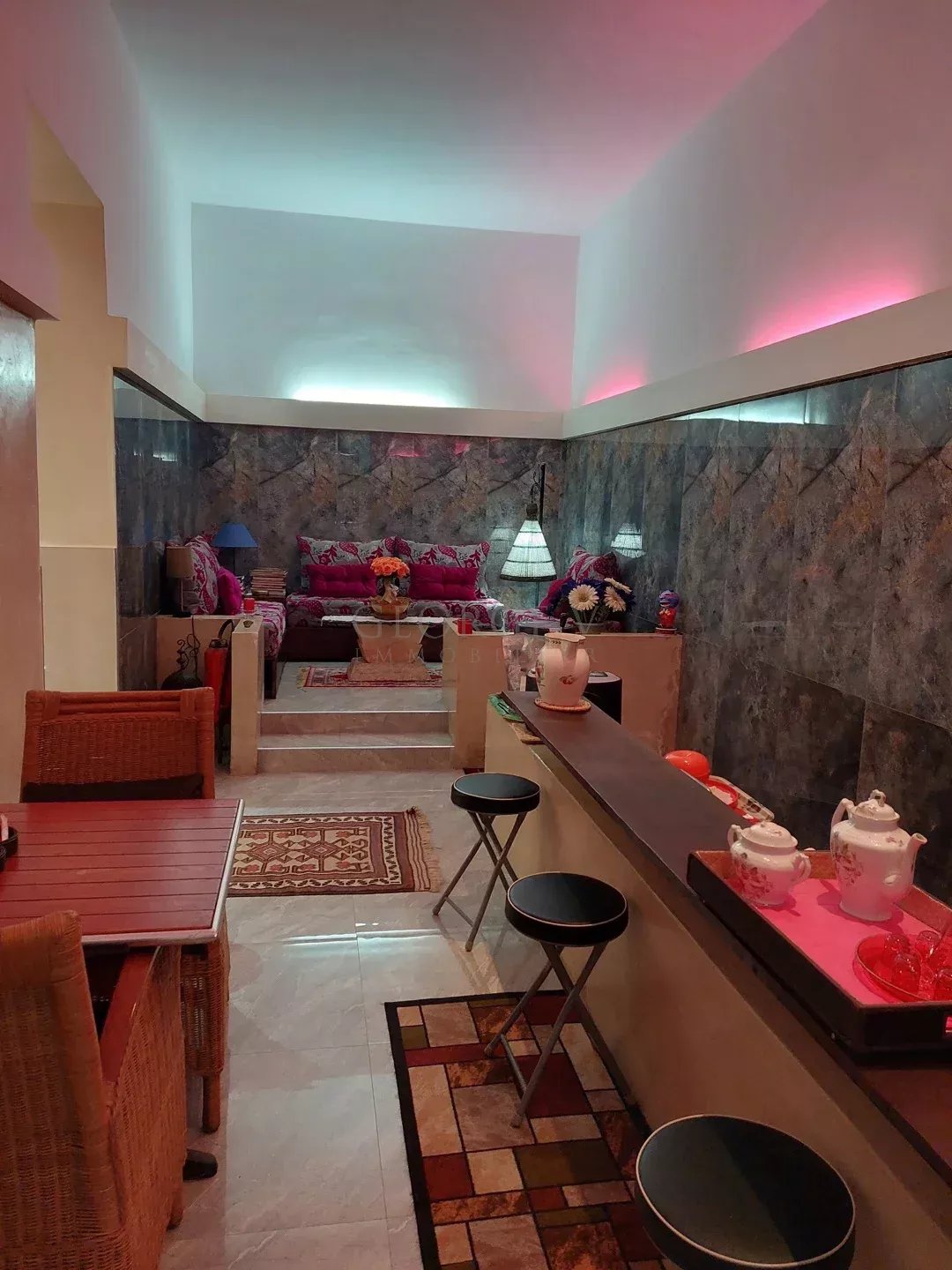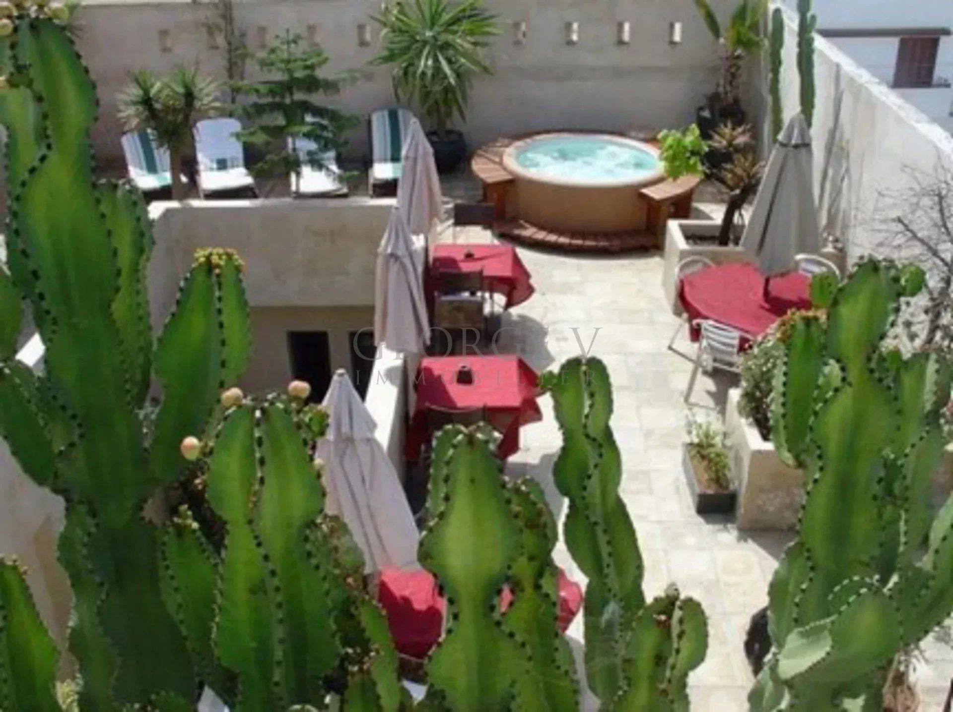 MOROCCO - (EL JADIDA 24000): offers you 85 km south of Casablanca, in EL JADIDA, the "Moroccan Deauville", a luxurious villa of 221 m² on the ground (710 m² in total), 10 rooms / 7 bedrooms, offering a Guest House-Catering and Well-being activity. This villa with a capacity of 13 people is organized as follows. Rch: Hall / Reception 30 m2, private lounges, Bedroom 15 m2 (massage). Dining room 20 m², WC, patio 16 m², living-dining room 15 m² overlooking Patio with its fireplace, large steel glass roof 4 meters high, thus transforming this living room into a winter garden, lounge Bar- Kitchen 15 m² fully equipped. Closed cellar. Tiled floors and Provençal paving stones for the patio. 1st Floor: Suite 40 m² - bathroom (anthracite tadelak), private lounge. 4 bedrooms of 23 m² / 11 m². Fans and reversible air conditioning, LCD TV. Bathroom and toilet in each of the bedrooms. Apartment 20 m², bathroom and WC. 2nd Floor: Linen room, washing machine, dryer, WC, DIY room or shower. TERRACE 150 m², alcoves, kitchen area. Washbasin, rest area, lounge bar, library, meals, sunbathing. 3rd Floor: Wellness area 40 m², panoramic view, jacuzzi, solarium, deckchairs, solar shower, massage room. The terrace is planted with lemon trees, banana trees, palm trees, Mexican cacti, hibiscus. All the electrical installation is to European standards (2007) and the electric meter, three-phase. The bedding is new, as are the satellite decoders. Approved by the Lonely Planet guides (the best restaurant in town), Le Petit Futé, and the booking agencies Booking.com, Expedia, Venere, and others. In conjunction with numerous Moroccan agencies, this property is under mandate number 1437.